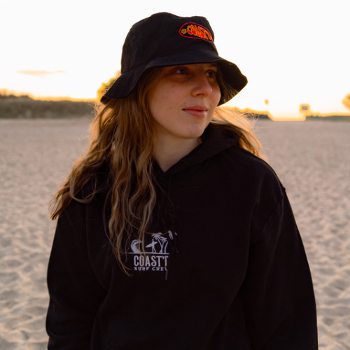Features the Coast'd Surfer embroidered design, the unisex SURFER HOODIE is perfect for winter beach warmth. 🏄♂️